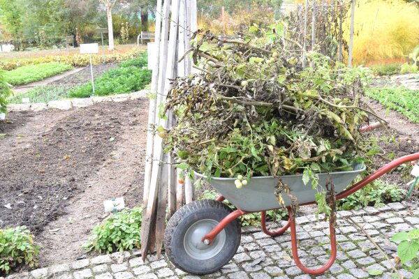 Frühes Umgraben jetzt im Oktober führt zu unnötigem Humusabbau, zumal die Böden noch sehr warm sind. Und zum Verlust von Nährstoffen ins Grundwasser, sobald es regnet. Wir behalten Humus und Nährstoffe lieber im eigenen Boden.