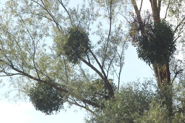 Misteln treten immer häufiger auf. Gerade jetzt in der lautlosen Zeit sieht man manche Bäume dicht mit den grünen Büschen besetzt. Möglicherweise sind es klimatische Veränderungen mit langen Trockenperioden, die die Wirtspflanzen schwächen und dadurch anfälliger für verschiedene Krankheiten und Schädlinge und auch für diese Halbschmarotzer machen.