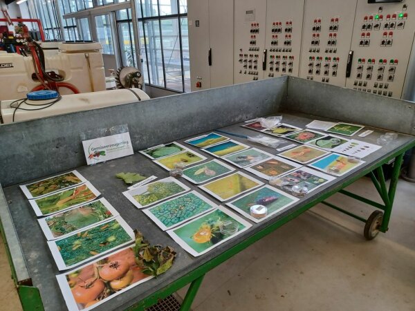 Der Einsatz von Nützlingen zur Bekämpfung von Schädlingen ist eine wichtige Pflanzenschutzstrategie im ökologischen Gartenbau. Der Workshop „Schädlingserkennung und Nützlingsmanagement im Unter-Glas-Gemüsebau“ bot für die Azubis die Möglichkeit, sich intensiver mit der Thematik auseinanderzusetzen. Neben einem Rundgang durch die Gewächshäuser und Folientunnel auf der Jagd nach Schädlingen wurden die kleinen Tierchen auch unter dem Binokular näher betrachtet und wichtige Interaktionen zwischen Schädlingen und Nützlingen erläutert.