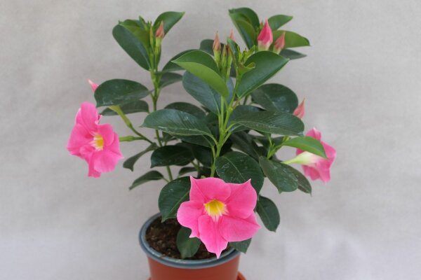 - Mandevilla 'Rose' (Gruppo Padana) wurde ebenfalls besonders positiv bewertet. Sie wächst ohne Ranken, ist hitzeverträglich und blühte ab Kalenderwoche 20.