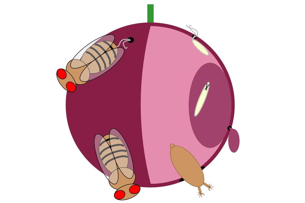 Zur Biologie der Kirschessigfliege Drosophila suzukii gibt es noch viele offene Fragen. Diese werden unter anderem in einem vom Bayer. StMELF geförderten Projekt untersucht. Entsprechend gilt es daraus Regulierungs- und Bekämpfungsmöglichkeiten für den fränkischen Weinbau zu erarbeiten und zu testen.
