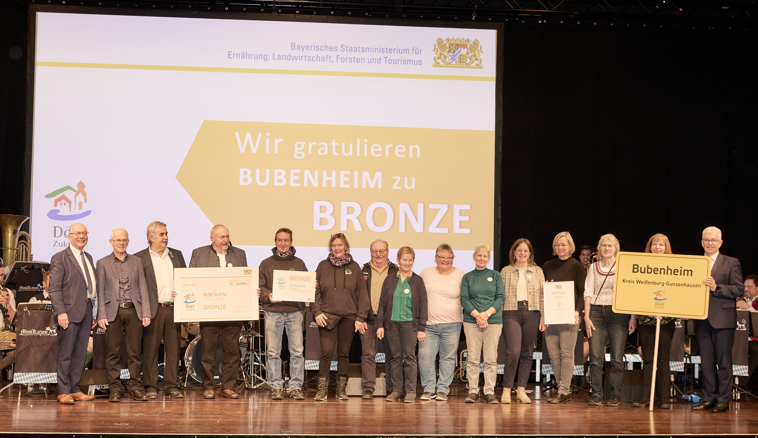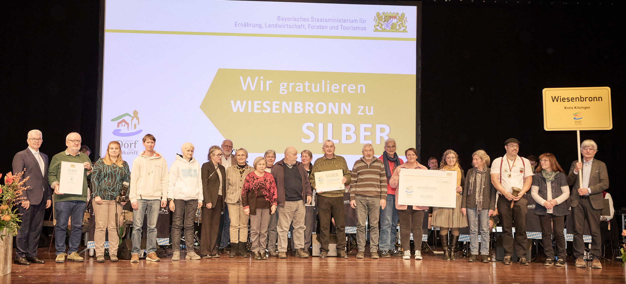 Sie sind Aushängeschilder des ländlichen Raums und Vorbilder für gelebtes Miteinander: Beim Landesentscheid des Wettbewerbs „Unser Dorf hat Zukunft“ zeichnete eine Fachjury jetzt zehn bayerische Dörfer aus. Bei der feierlichen Abschlussveranstaltung am Samstag, den 22. November 2025 in den Mainfrankensälen in Veitshöchheim überreichte der Amtschef des Bayerischen Landwirtschaftsministeriums, Hubert Bittlmayer, in Vertretung von Staatsministerin Michaela Kaniber die Preise an die Gewinnerdörfer: Zwei Mal Gold, sechs Mal Silber und zwei Mal Bronze!