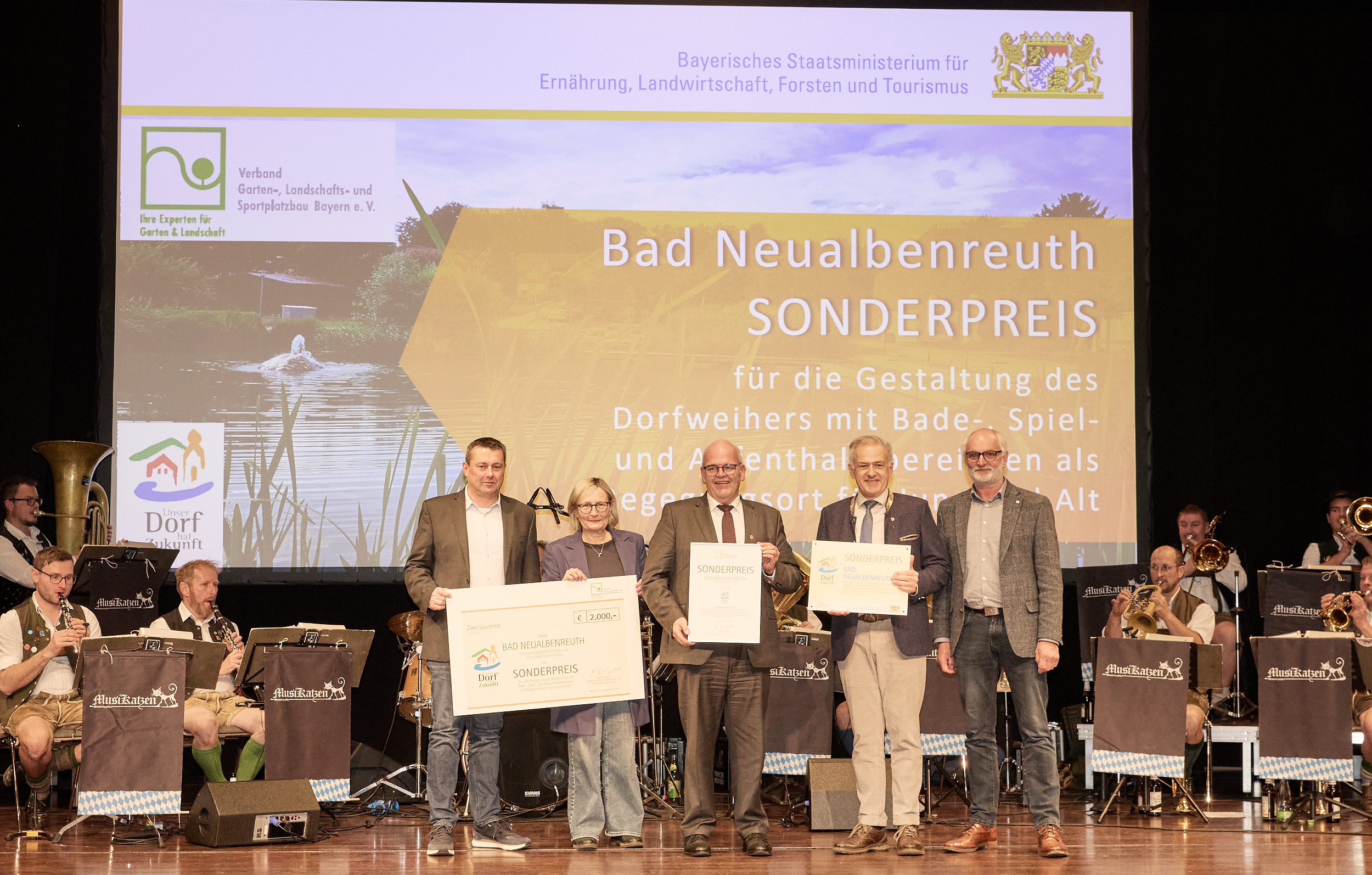 Sonderpreis des Verbandes Garten- und Landschafts- und Sportplatzbau Bayern e.V. für „die Gestaltung des Dorfweihers mit Bade-, Spiel- und Aufenthaltsbereichen als Begegnungsort für Jung und Alt“.