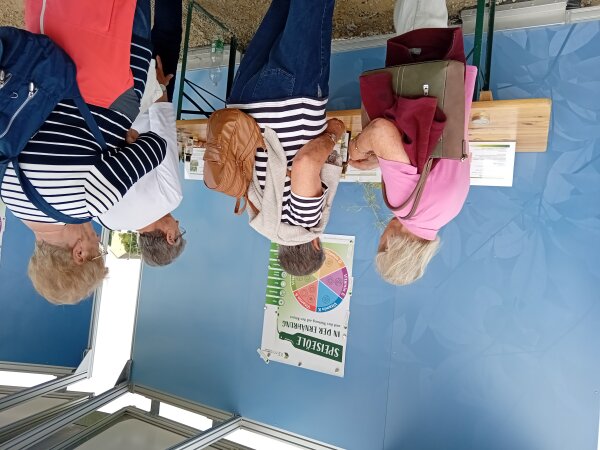 Viele Besucher überzeugten sich durch kleine Kostproben von der besonderen Qualität und Schmackhaftigkeit der Öle. Neben den gesundheitlichen Aspekten wurde auch bezüglich Biodiversität und Klimaschutz einiges erläutert. Mit dem Kauf von heimischen Ölen wird die Landwirtschaft vor Ort, die auch oft in Bioqualität produziert und Direktvermarktung betreibt, unterstützt. Den interessierten Besuchern wurde ein bewusster Einkauf und die Lust auf neue Geschmackserlebnisse nahegebracht. In der Zeit von 9.00 - 15.00 Uhr wurde der Stand besonders stark frequentiert. Die Austellerinnen freuten sich über die vielen Besucher aller Altersgruppen, den Wissenshunger und die netten Gespräche. Bereitliegendes Infomaterial wurde sehr gut angenommen. Ein weiteres Highlight war die Vorführung des Ölpressens, hier wurde Rapssaat verwendet.